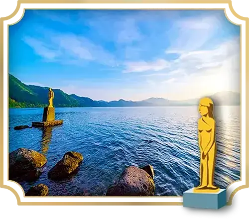 以深度第一、透明度第二的湖水聞名日本的田澤湖,最深處達423米,湖畔旁金色的辰子像,增添了浪漫的傳說,寧靜的水面倒映著漂亮的藍天和白雲,在光線的折射下,呈現出七彩的琉璃色。