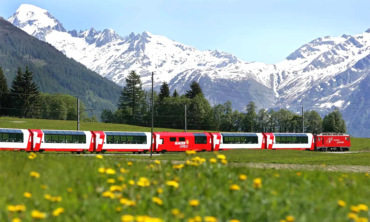特別安排★冰河列車前往策馬特。全程291公里,是瑞士最受歡迎的景觀火車遊覽路線之一,透過車廂頂部的弧形大窗視野開闊,沿途經萊茵山谷,嗌口、橋樑、隧道、隆河谷地,山林風景,阿爾卑斯山群峰雄姿,亦為此行程的重頭戲之一,令您不虛此行。