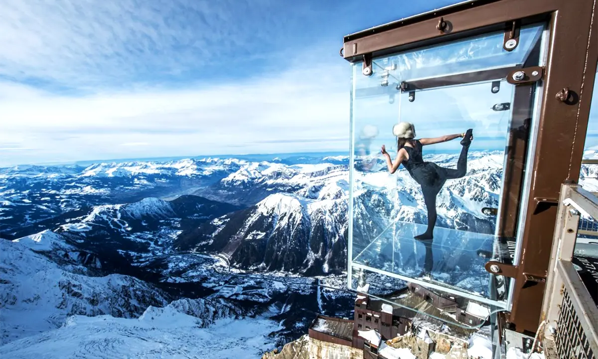 今日前往法、瑞邊界前往法國最著名的度假勝地霞慕尼,午餐後搭乘兩段大型吊纜從海拔1,000公尺左右的霞慕尼,直登3,842公尺的★南針峰觀景台,這段2,700公尺高度差的旅程,只需要20分鐘。南針峰觀景台不僅能夠欣賞西歐屋脊白朗峰巍然屹立的景致,可以360度環視法國、瑞士與義大利連綿不斷、千峰萬仞的山岭風光,推薦挑戰2013年的新設施-舞入真空(Le Pas Dans la Vide),置身於懸空1,000公尺的透明玻璃帷幕中,體驗與眾不同的震撼。