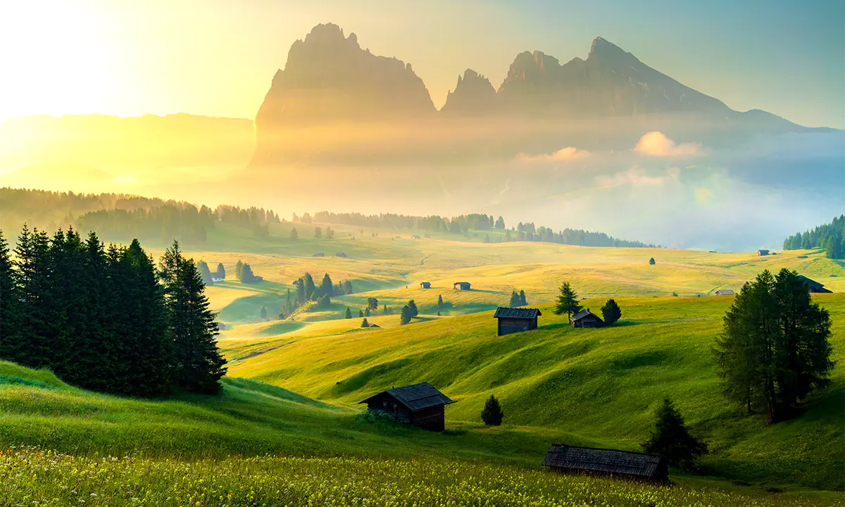 ▲富內斯坐落在群山縱谷間,整片的翠綠大草原,純樸的村落與老教堂錯落其間,天際線上矗立著巒峰和峭壁。在這裡,時間彷彿靜凝,唯美的畫面也最能代表多洛米蒂印象。