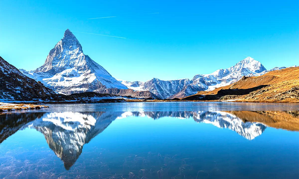 早餐後,搭乘電車前往▲葛納革娜,沿途可見古樸的村屋及可愛的羊群,若天氣晴朗可以眺望馬特洪峰的雄姿及海拔4,000公尺以上的高峰與冰河。★葛納革娜登山火車及觀景台,此部列車於1898年通車,為歐洲最早電氣化的登山火車。從策馬特到海拔3089公尺的葛納革娜觀景台,全程約9公里,上山需約33分鐘,沿途馬特洪峰相隨,忽前忽後,呈現不同的角度和面貌,在此可盡情眺望4,478公尺高的馬特洪峰的壯麗英姿,著名的瑞士三角形Toblerone巧克力就是象徵馬特洪峰喔!今日我們也特別安排來段頗受當地遊客歡迎的★阿爾卑斯山健行前往熱門景點利菲爾湖Riffelsee,在清新的空氣、群山的環繞、綠油的草地伴隨下,您可看到不同角度與馬特洪峰美麗的湖面倒影,讓我們一起與大自然共舞吧!