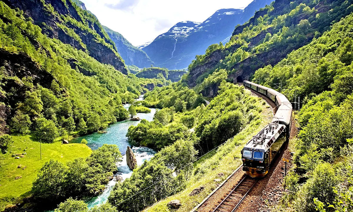 這段火車路線是世界最陡的一段,經標高866公尺的『麥道爾』下降到海拔2公尺的『佛萊姆』,平均每18公尺就會下降1公尺,可想見當時工程有多麼艱鉅,一路經過隧道、瀑布,忽高忽低、上山下谷,沿途美景歷歷如繪,美得教人屏息。