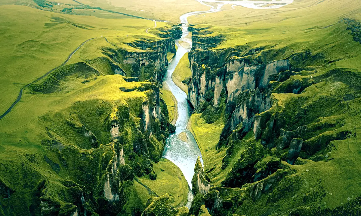 從空中俯瞰就像是一片羽毛的形狀,因此又稱羽毛峽谷,位於冰島南部區東部,於9,000年前的冰河侵蝕山谷,退卻後所形成的景觀,與峽灣地灣成因相似,有世界最美峽谷美名。峽谷蜿蜒裂縫,深約100米,長約2公里,從低處涉水俯瞰峽谷的高聳陡峭,感受大自然的鬼斧神工,雖然是小眾的冰島私房景點,卻也能輕易震撼人心。