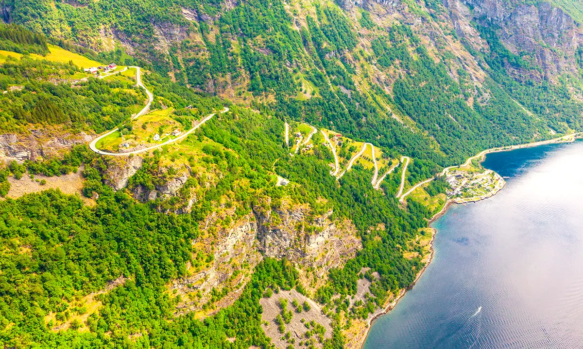 老鷹公路是連接 Geiranger → Eidsdal 的著名山路,也是惡名昭彰但景色絕美的「挪威國家觀景路」之一。鷹彎觀景台是其最經典的制高點,可俯瞰蓋朗厄爾峽灣、七姊妹瀑布與峽灣小鎮,視野壯闊,是所有旅人的必拍地標。