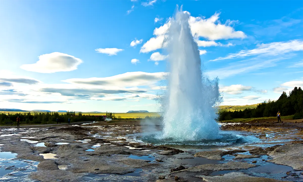 豪克達魯山谷中的蓋錫爾間歇噴泉(Geysir),因地熱冒出的白煙瀰漫,到處冒出灼熱的泉水,噴發時的震撼是到訪冰島一定要感受的視覺饗宴!