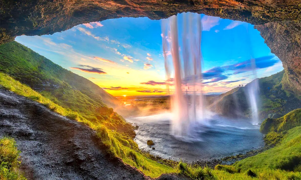 高約60公尺的史可加瀑布,正對著南面的特殊位置,據說只要有陽光出現,出現彩虹的機率可是高達 95%!更曾有維京人將寶藏埋藏於此的神秘傳說。