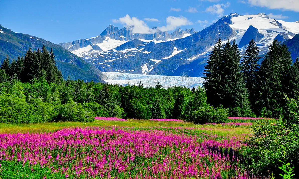 由長 19 公里的「朱諾大冰原」所孕育出,將滿山透藍的冰雪,虎虎地伸向機場,為朱諾開闢最具阿拉斯加特色的櫥窗。此冰河形成於 3,000 年前的小冰河時期,在此可沿著步道散步,走到冰河觀景台驚艷其不同的美麗風采。