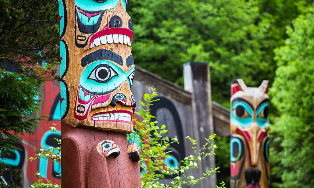 除了可與美麗的圖騰柱拍照留影外,更可以透過每一根圖騰了解其深遠的涵義與獨特象徵。之所以稱為圖騰柱是因為音譯的 Totem,這個字源於美洲原住民族群 Ojibwe 裡的 Odoodem,一般而言該形態可以粗分為...代代流傳來記錄原住民傳說的圖騰柱、用來象徵家族地位的家門柱、歌頌長者或勇士的紀念柱,以及紀念慶典或是特殊事件的圖騰柱,所以似乎不代表任何敬拜或宗教意義,甚至於當印第安人移居時,也就這樣任由圖騰柱受風吹日曬雨淋而腐爛。