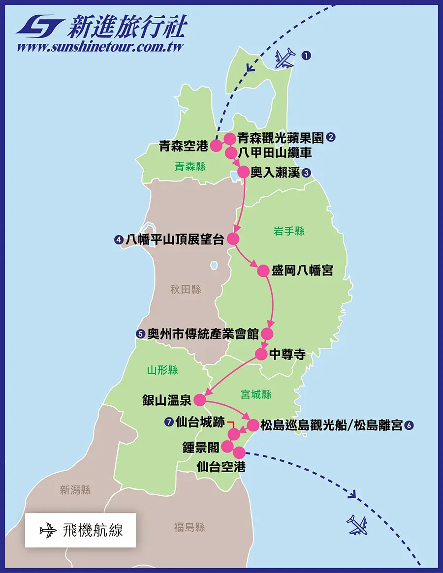 本日的最後,提著行囊搭乘專用大巴前往仙台機場,帶著滿載的回憶及愉快的心情,準備搭乘豪華客機返回溫暖的家,結束本次東北7日秋彩饗宴之旅。