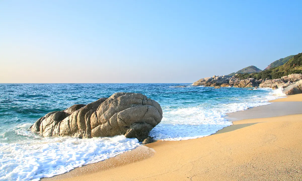 屋久島並不僅僅只有山,這裏的海也值得一贊。永田海濱就是最具代表性的海濱之一。風化的花崗岩隨著海風飄落海邊,黃色的沙灘就是永田海濱的代表色。這片美麗的海灘全長1km,面朝東海。海景美,從永田海濱仰望山嶽也別有一番味道。山岳間層層交替的植被,深綠,淺綠,墨綠,青綠,色澤層次分明,讓人百看不厭。屋久島山岳層巒起伏,在永田海濱還可以仰望到屋久島第二高峰「永田岳」(1886m)一角。永田海濱也是世界屈指可數的紅海龜產卵地。被指定為世界自然遺產的屋久島西北部永田地區,聚集的紅海龜數量占全日本的30~40%。