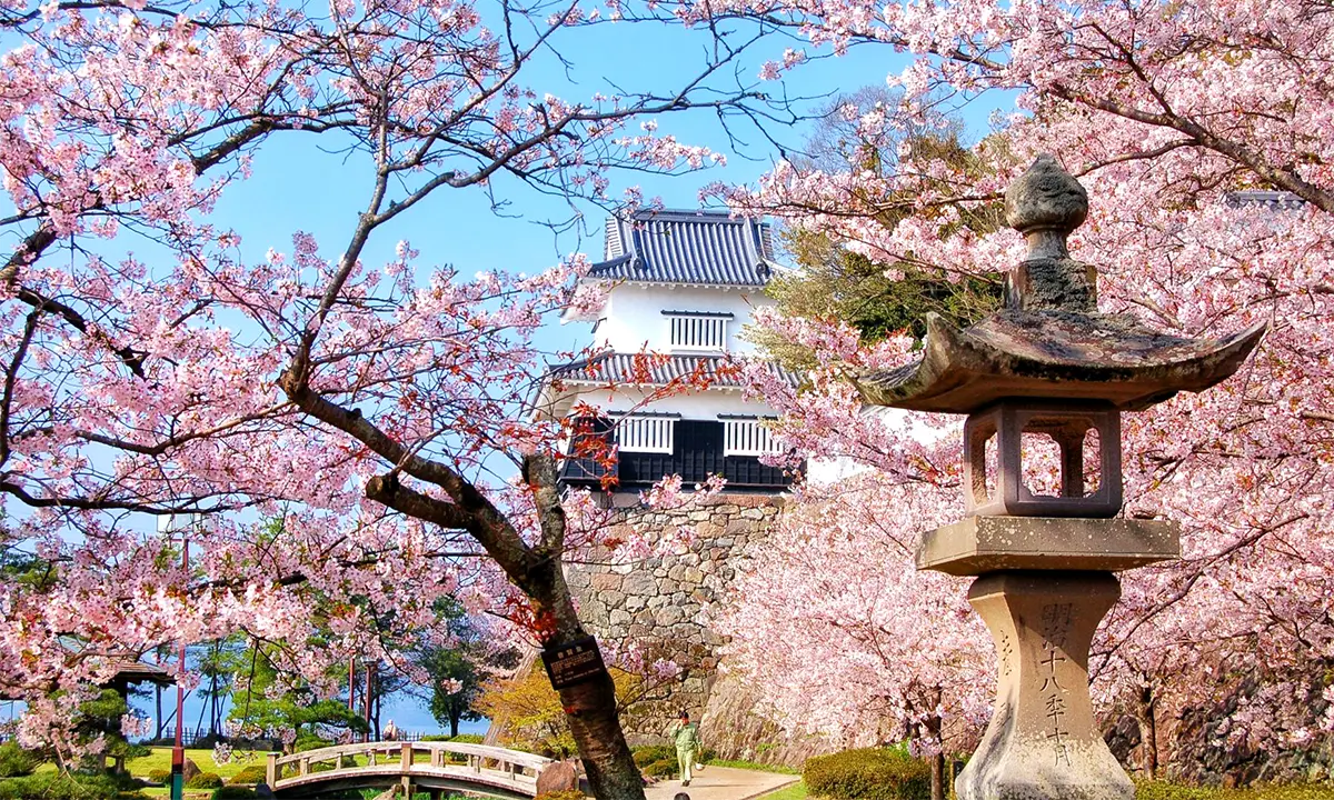 唐津城座落於唐津灣畔的唐津城,每年花季吸引遊人前來欣賞約220株盛開的櫻花。這裡是拍攝櫻花與古城交相輝映美景的絕佳地點。此外,登上天守閣最頂層的展望台,還可俯瞰虹之松原等周邊壯麗景色,一覽無遺。而通往鏡山山頂沿途絕妙的景色也是佐賀縣知名,蜿蜒約5公里的公路可以從不同角度欣賞唐津市美景。此外,鏡山山頂還設有休息區和公園,是以櫻花、杜鵑花等花卉景色聞名的賞花名所。春時道路兩旁的櫻花同時盛開形成「櫻花隧道」,櫻花與絕景同框之美絕對值得一看。