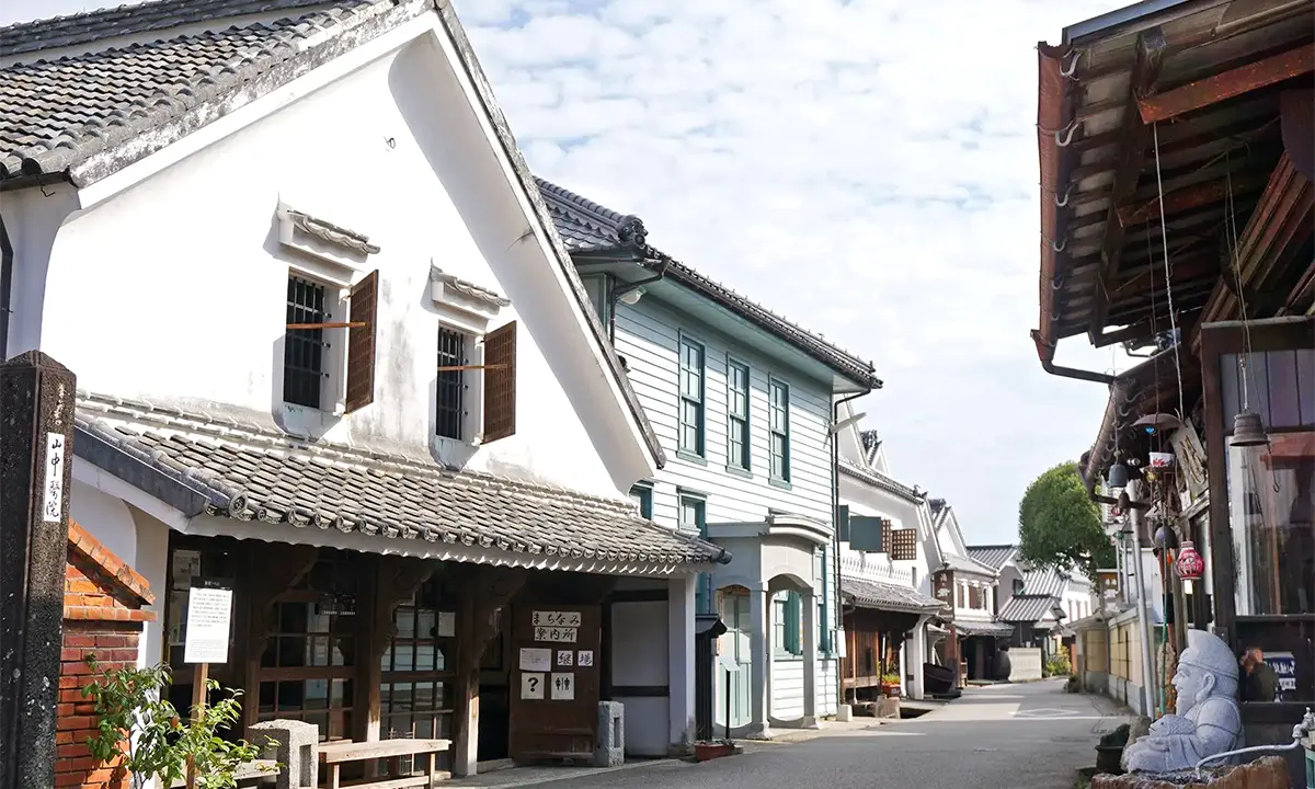 佐賀縣鹿島市,自江戶至昭和時代因清酒與醬油釀造業而繁榮。憑藉多良岳山系的清澈水源、白石平野的優質米,以及有明海的海運通道,當地自古即為知名釀酒重鎮。肥前濱宿現今雖僅保留四家釀酒廠,但白壁酒藏、釀酒廠與武家宅邸並列而成的「酒藏通」仍完整留存,部分酒藏開放參觀與試飲,吸引旅人前來品味在地銘酒。宿場町特色建築「繼場」亦保存至今,現作為觀光諮詢中心,傳承肥前濱宿的歷史風情。