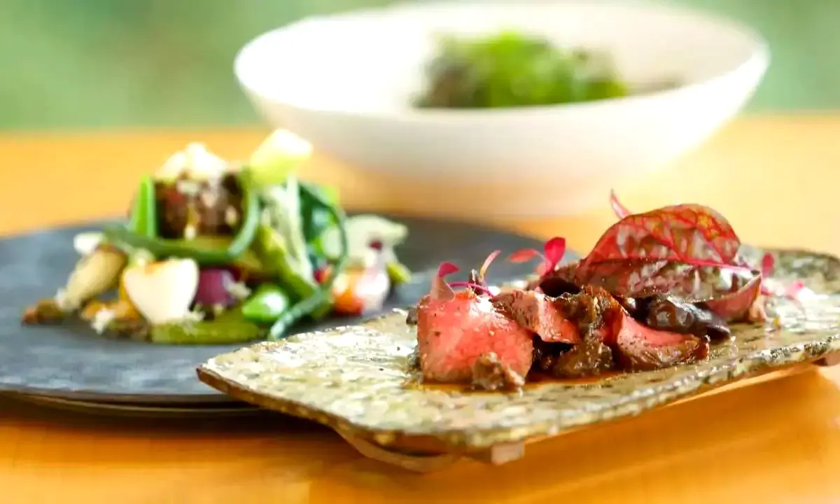 午餐在御船山樂園的四季美景中品嘗精心烹製的佐賀逸品美饌。餐具更是選用知名有田陶瓷和武雄市當地當地藝術家的作品,邀請饕客享受精緻創作料理饗宴。