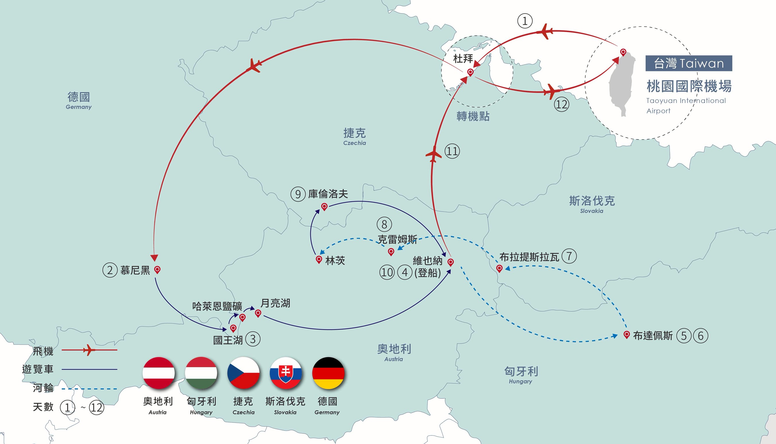 不含項目:不含領隊小費、河輪小費、行李超重費、接送費、私人消費